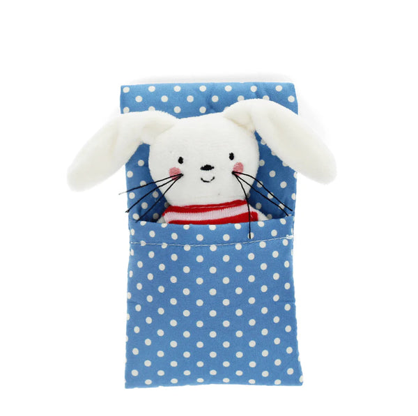 This cuddly bunny comes dressed in a stripy jumper and is tucked in with a cozy polka dot blanket inside a beautifully illustrated gift box.